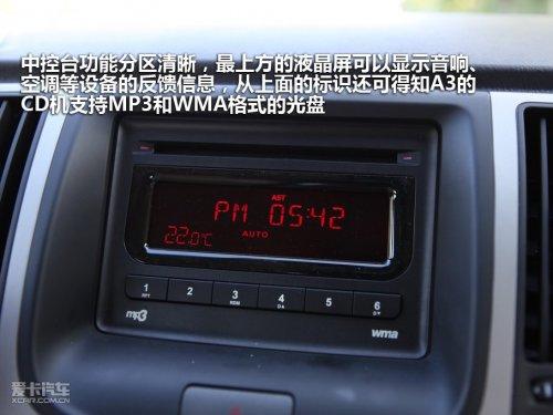 中控臺功能分區(qū)清晰,最上方的液晶屏可以顯示音響、空調(diào)等設(shè)備的反饋信息,從上面的標(biāo)識還可得知A3的CD機支持MP3和WMA格式的光盤。中控臺中央的區(qū)域是音響控制面板,想用熟練還需要簡單的適應(yīng)。