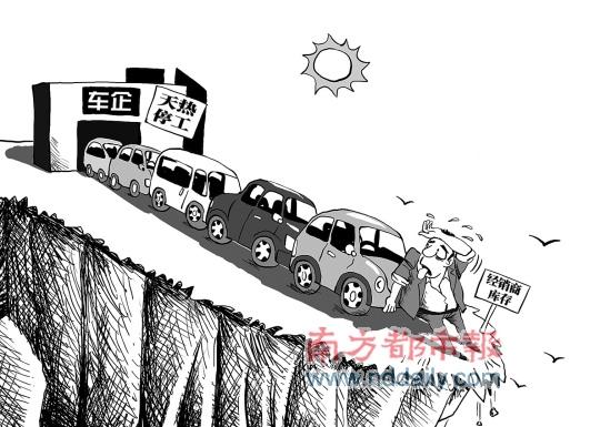 以一家年產30萬輛的車企為例,其日產量高達820輛,如果這家企業(yè)休10天高溫假,相當于在7、8月減產8000多輛。