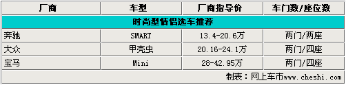 時尚型消費(fèi)者購車推薦:SMART、甲殼蟲、Mini