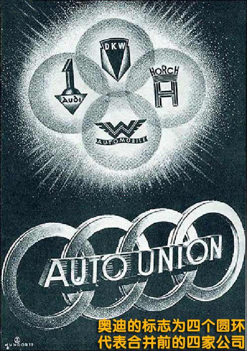 這四家公司對(duì)當(dāng)時(shí)德國(guó)汽車工業(yè)的進(jìn)步做出了杰出的貢獻(xiàn)。這四家汽車公司于1932年合并為汽車聯(lián)盟股份公司(auto union ag)。從汽車產(chǎn)量來說,汽車聯(lián)盟是當(dāng)時(shí)德國(guó)第二大汽車制造公司,商品標(biāo)志為四個(gè)連接的圓環(huán),代表參與合并的四家汽車公司。世界上也就首次出現(xiàn)了四環(huán)標(biāo)志。