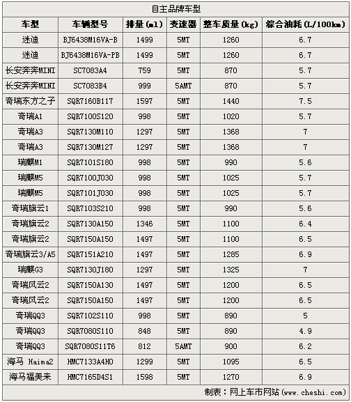 在自主品牌目錄中,完全沒有前兩個陣營中慘烈廝殺,成一邊倒局面,霸主就是奇瑞品牌。光是入選的車型就有11種,款型更是達到了17款,要知道自主品牌第二批名單一共才有23款車型。零星殘存的勢力分別由北汽、長安以及海馬三個品牌占據(jù),其他品牌沒有動作。