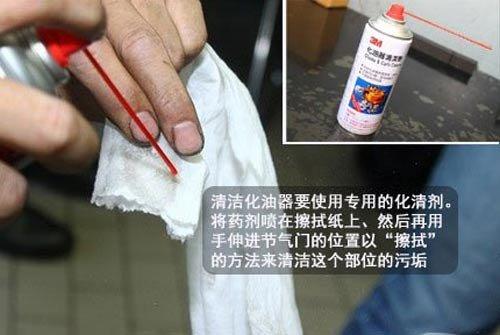 在早期,一般師傅使用化清劑的方式進(jìn)行清洗時,會直接朝節(jié)氣門內(nèi)部做噴灑的清潔動作。而這次我們使用擦拭的方式來進(jìn)行。這是因為化清劑會腐蝕塑膠、橡膠類的材料,而且還會將所有的潤滑油通通溶解。所以噴灑的方式雖然面積可以更廣泛、但日久也會造成內(nèi)部機(jī)件的損傷,容易造成怠速步進(jìn)馬達(dá)、油封等問題。