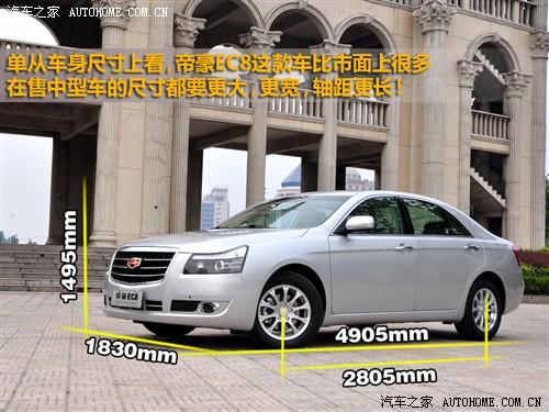 車身尺寸早就成為中國(guó)人選擇中型車的一個(gè)重要參考指標(biāo),而帝豪EC8車型的車身尺寸為長(zhǎng)*寬*高:4905mm*1830mm*1495mm,其中車身長(zhǎng)度為4905mm,這樣的尺寸在國(guó)內(nèi)在售的中型車中是相對(duì)較大的,另外2805mm的軸距也是一個(gè)相當(dāng)有誘惑力的數(shù)字。同級(jí)車中最長(zhǎng)的車身與長(zhǎng)軸距就為這款車在內(nèi)部空間上上帶來(lái)了相對(duì)富足的空間,究竟內(nèi)部空間怎樣我們下面會(huì)詳細(xì)說(shuō)。