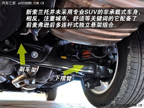 索蘭托懸掛舒適性傾向較強,使用承載式車身和多連桿后懸掛結(jié)構(gòu),充分體現(xiàn)了城市路況的駕駛需要,不過下擺臂不算單薄,進行簡單的穿越可以應(yīng)付,但是排氣管的位置偏低,所以應(yīng)該格外小心,謹(jǐn)防托底。