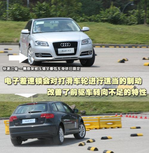 為了讓我們?nèi)轿惑w驗(yàn)奧迪A3 Sportback的性能,奧迪公司特意安排了難度極高的場(chǎng)地試駕。奧迪A3 Sportback的前懸掛為麥弗遜減震滑柱總成帶下部三角形控制臂,鋁制副車(chē)架和管型穩(wěn)定桿。