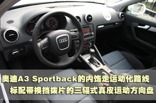 進(jìn)入奧迪A3 Sportback的駕駛室,一定會(huì)被濃重的運(yùn)動(dòng)氛圍牢牢俘獲:儀表臺(tái)、圓形出風(fēng)口、以及只在奧迪運(yùn)動(dòng)型車(chē)上采用的方向盤(pán)式樣,使A3 Sportback的內(nèi)飾看上去與同平臺(tái)的奧迪TT跑車(chē)擁有一脈相承的設(shè)計(jì)理念。