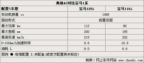 寶馬116i與奧迪A3 1.4T動力相近 更低定位意味著價位更低