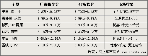 隨著國家政府推行小排量車的補(bǔ)貼政策,及人們對日常小型車的需求,各個(gè)廠商分別看重了這一市場的發(fā)展?jié)摿,逐步研發(fā)推出適合中國市場的小型車。8月30日,東風(fēng)日產(chǎn)也正式推出了A0級車型——瑪馳,從而日產(chǎn)也填補(bǔ)了在小型車系列中的空缺,與此同時(shí)我們選出了6款與瑪馳同級別的車型,看看這些車在近期都有哪些優(yōu)惠。