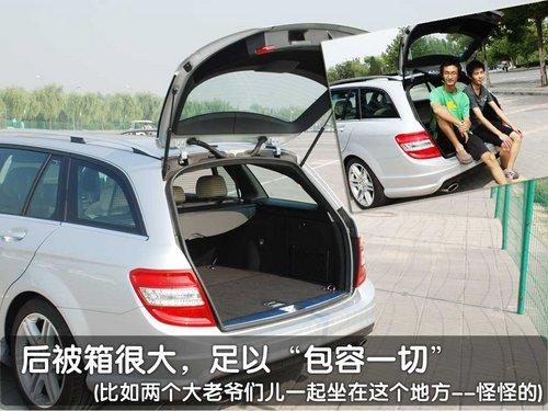 很多人會指著這款奔馳C級旅行車說:看,這不就是加了一個大尾巴嗎?大家的看法我想是不無道理的。不過至少從外型上來說,C級旅行車與普通C級轎車除了正面上看幾乎無法分辨之外其它的每一個角度C級旅行車都會顯得那么與眾不同。從B柱開始至車尾,奔馳C級旅行車的側(cè)面線條由于外形的設(shè)計被拉伸的非常明顯。車頂?shù)膬蓷l鋁合金行李架對于C級旅行車來說顯得尤為重要,而如果車主選了了官方提供的套件,那么除了在車頂或是車尾加裝自行車架之外,托掛上一臺小拖車也是沒有問題的。自行車、行李箱又或是滑雪板、沖浪板,任憑您能夠想到的東西不妨都嘗試著舉到車頂上面——這真的是一種有趣的嘗試。