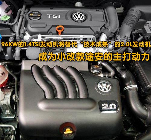 新款大眾途安在海外有兩款汽油發(fā)動(dòng)機(jī)和四款柴油發(fā)動(dòng)機(jī)供消費(fèi)者選擇。而國產(chǎn)后將搭載1.4TSI與1.8TSI兩款發(fā)動(dòng)機(jī),匹配5速手動(dòng)變速器以及大眾引以為豪的7速DSG雙離合變速器。動(dòng)更強(qiáng)勁的1.4TSI發(fā)動(dòng)機(jī)將替代現(xiàn)有的技術(shù)老舊的2.0L發(fā)動(dòng)機(jī),通過參數(shù)對(duì)比我們可以清楚的看到1.4TSI發(fā)動(dòng)機(jī)不僅功率高出了2.0L機(jī)型,而且在2000轉(zhuǎn)一下就可以爆發(fā)出220nm的最大扭矩,非常適合城市駕駛。
