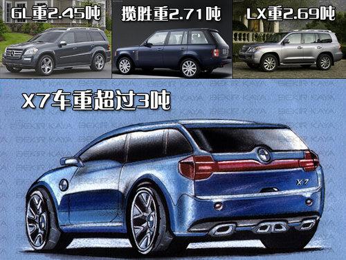 寶馬X7預(yù)計(jì)車重將超過3噸,同等級(jí)的競(jìng)爭(zhēng)對(duì)手奔馳GL550整備質(zhì)量?jī)H為2.5噸不到。如此看來GL級(jí)在寶馬X7面前也算是小弟了。據(jù)稱寶馬X7會(huì)融合X5和7系的多項(xiàng)設(shè)計(jì)元素,將X5的高性能越野能力和7系的豪華裝備完美結(jié)合。X7內(nèi)部空間會(huì)設(shè)置三排座椅,保證所有乘客都擁有極好的舒適性,而不是市面上一些SUV所謂的“假三排”。它的行李廂也是一大亮點(diǎn),容積可能達(dá)到3000升左右,奔馳GL550的這一數(shù)據(jù)是2300升。