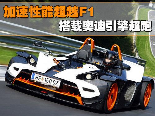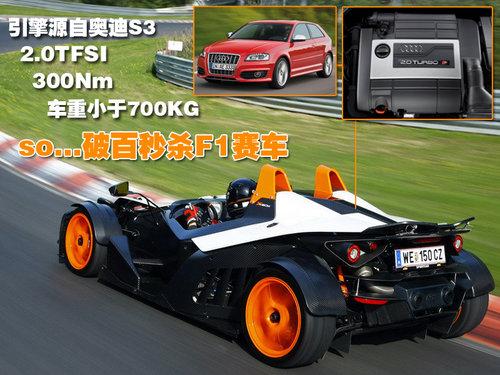 KTM制造了迄今為止最強(qiáng)大的一臺(tái)X-BOW。新款的車型被命名為X-BOW R,引擎源自?shī)W迪的S3車型,這臺(tái)S3引擎原先調(diào)校輸出已有265匹,移植到R身上,輸出功率已經(jīng)被調(diào)至300匹。經(jīng)過(guò)簡(jiǎn)單計(jì)算,它的性能幾乎已經(jīng)超越了F1賽車。