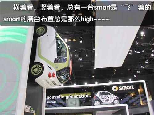 所謂“飛檐走壁”派其實(shí)是我個人對那些把展車架在“天上”的廠商。例如在歐洲非常受歡迎的SMART品牌就把兩臺展車高高的懸掛在了空中,一個橫著、一個豎著讓人無論怎樣看過去都會發(fā)現(xiàn)有一臺smart是“飛”在天上的。保時捷在這一次巴黎車展也發(fā)布了全新跑車,此外在展臺的兩層建筑的上層保時捷還把一臺跑車放在了透明的盒子里,好像巴黎街頭名品服裝店內(nèi)的模特一樣。BMW展臺同樣是雙層建筑的設(shè)計(jì),在二層一臺老爺車與一臺電動版1系分別代表著寶馬的過去與未來。
