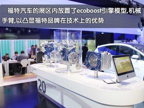福特汽車在這次巴黎車展現(xiàn)場從面積上來說還是不小的,但是在展區(qū)內(nèi)的設(shè)計(jì)以及各個(gè)展示區(qū)域的布局上與國內(nèi)近兩次大型國際車展的布局和功能沒有區(qū)別。由于福特正在積極宣傳他們的ECOboost增壓加直噴引擎,所以福特展區(qū)內(nèi)引擎占據(jù)了重要的位置。
