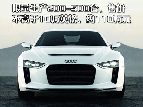 奧迪官方稱正與工程師團(tuán)隊(duì)協(xié)作將Quattro概念車量產(chǎn)變?yōu)楝F(xiàn)實(shí),需要做多處工程學(xué)上的改良設(shè)計(jì)。這款車先期會限量生產(chǎn)200至500輛,售價(jià)估計(jì)不會高于10萬英鎊,約合人民幣110萬,預(yù)計(jì)會引入國內(nèi)市場銷售。