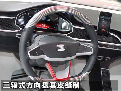 西亞特IBE概念車采用的三輻式運(yùn)動型方向盤設(shè)計(jì),灰色格調(diào)下配有紅色點(diǎn)綴,很有性能車的感受,材質(zhì)上采用真皮縫制手感會非常不錯(cuò)。