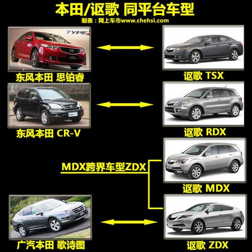目前廣汽本田/東風(fēng)本田生產(chǎn)的部分車(chē)型都與謳歌車(chē)型同來(lái)自一個(gè)平臺(tái)。例如:東風(fēng)本田的高性能運(yùn)動(dòng)轎車(chē)思鉑睿就和謳歌TSX同平臺(tái)生產(chǎn)。同出一轍東風(fēng)本田的CR-V與謳歌RDX也存在同樣的關(guān)系。而即將上市的廣汽本田歌詩(shī)圖則是與謳歌MDX的跨界車(chē)型ZDX的平臺(tái)相同。廣汽本田歌詩(shī)圖上市后的價(jià)格明顯要比原裝引進(jìn)謳歌ZDX的價(jià)格低,當(dāng)然也更容易被中國(guó)消費(fèi)者所接受。