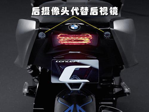 從正面看你可能會(huì)把Concept C誤認(rèn)為一輛街道摩托跑車,而實(shí)際上這是由于它借鑒了寶馬重型摩托車的諸多設(shè)計(jì)風(fēng)格。車頭采用LED大燈,這頗有點(diǎn)汽車的風(fēng)范。摩托車儀表盤被一塊大的液晶屏取代,上面可以實(shí)時(shí)顯示各種系統(tǒng)信息。如果您眼神夠犀利的話會(huì)發(fā)現(xiàn)這是一臺(tái)沒有后視鏡的摩托車,不過(guò)那只是假象,在尾部并排安裝有兩個(gè)攝像頭,可以把后方圖像實(shí)時(shí)傳送至儀表臺(tái)屏幕。