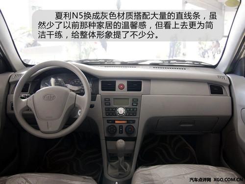 夏利N5內(nèi)飾也經(jīng)過了一番大改,放棄了原先的暖色格調(diào),該成灰色材質(zhì)搭配大量的直線條,雖然少了以前那種家居的溫馨感,但看上去更為簡潔干練,給整體形象提了不少分,沒有十分廉價的感覺。