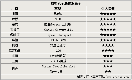 在這屆洛杉磯車(chē)展上,12款新車(chē)首發(fā)涵蓋了美、德、日等廠商,在車(chē)型類(lèi)型則有轎車(chē)、敞篷跑車(chē)、SUV、MPV等,除此之外還有純電動(dòng)車(chē)登場(chǎng)。這其中君威GS、9-4X、攬勝Evoque 五門(mén)版等6款車(chē)預(yù)計(jì)明年引入國(guó)內(nèi),其他如奧迪Q5混合動(dòng)力、克萊斯勒200、純電動(dòng)RAV4也有引入的可能。