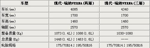 現(xiàn)代瑞納VERNA與i20同平臺生產(chǎn),兩廂車型在前臉設(shè)計上與三廂不會有太大的不同,車身尺寸上除了長度外,其他與三廂車型基本相同,三廂版瑞納,寬為1700mm,高為1460mm,軸距為2570mm,車身比雅紳特要大了不少。關(guān)于兩廂版瑞納的詳細信息請參見下表: