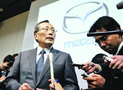 圖為日本馬自達汽車公司總裁山田憲昭18日在東京出席記者招待會的情形。該公司當天宣布,美國福特汽車公司對其持股比例將從11%降至3.5%,這將使前者喪失馬自達最大股東身份。據悉,福特自1979年以來一直是馬自達的最大股東,一度擁有馬自達超過1/3的股份,自2008年全球金融危機爆發(fā)以來開始減持馬自達股份。