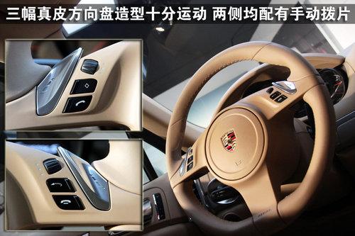 混合動力版卡宴配備了與911 Turbo相似的方向盤,其手感自然無需多言,牢靠扎實的握感,使你對它有著極高的駕駛欲望,兩側(cè)分別配備了鋁制換擋撥片,3點及9點鐘方向還集成了語音免提及車輛信息按鍵,而巡航系統(tǒng)則被裝配在了方向盤的后方位置。