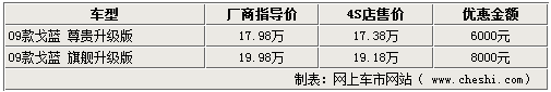 三菱09款戈藍(lán)正式上市到現(xiàn)在已經(jīng)快兩個(gè)月了,而銷售境況卻一直沒有完全鋪開。近日網(wǎng)上車市網(wǎng)站了解到,北京銷售的09款戈藍(lán)售價(jià)已經(jīng)由上個(gè)月的優(yōu)惠5000元提升至現(xiàn)在的最高優(yōu)惠8000元。具體詳情如下: