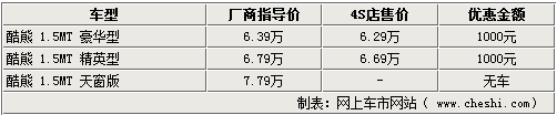 長城酷熊作為長城汽車在市場上推出的第三款轎車產(chǎn)品,憑借極具個性的造型和寬大的內(nèi)部空間,使很多消費者都對其非常感興趣。新車價格分別為豪華型6.39萬元、精英型6.79萬元,天窗版7.79萬元。近日,網(wǎng)上車市網(wǎng)站了解到,長城汽車4S店處的天窗版酷熊仍然是有價無車的狀態(tài),其他兩款車型有現(xiàn)車銷售,可以給出千元的優(yōu)惠。具體詳情如下: