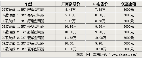 據(jù)奇瑞汽車4S店銷售人員介紹,瑞虎3目前現(xiàn)車齊全,除四驅(qū)車型只接受預(yù)訂,大概兩周以后可以提到現(xiàn)車外,2.0L自動(dòng)擋車型以及1.6L和1.8L車型的現(xiàn)車比較齊全,目前全系車型都可以優(yōu)惠6000元,歡迎消費(fèi)者到店賞車試駕。