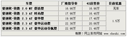 據(jù)4S店銷售人員介紹:目前蒙迪歐致勝全系優(yōu)惠1.5萬(wàn)元,現(xiàn)車較充足,但顏色不是非常齊全,只有銀色、灰色、黑色現(xiàn)車。如預(yù)定需等10天至20天左右,現(xiàn)車到店時(shí)間較短。2.0車型目前不接受預(yù)訂,廠家不給予排產(chǎn),2.3升至尊版車型目前也已停產(chǎn),請(qǐng)用戶根據(jù)自己的需求選擇車輛。