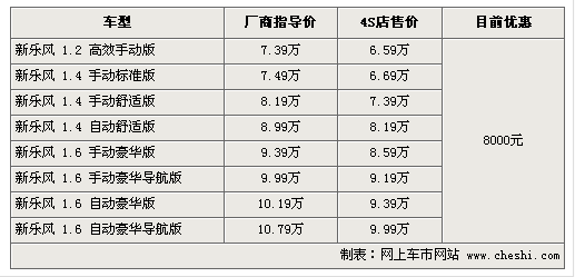 據(jù)4S店銷售人員介紹:目前雪佛蘭新樂風(fēng)全系優(yōu)惠達(dá)8000元,較之前優(yōu)惠幅度持平。1.2車型目前無現(xiàn)車,預(yù)訂需等1-3周左右。由于1.2升較小的排量與新樂風(fēng)略大的車身配比并不十分完美,所以選擇1.4升排量車型消費(fèi)者較多,同時現(xiàn)車也非常充足,顏色較齊全。1.6升車型目前現(xiàn)車較少,顏色也不夠齊全,銀色車型較多,預(yù)定需等待1-2周時間。