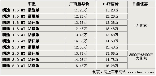據(jù)4S店銷售人員介紹:目前朗逸全系無現(xiàn)車,全部需要預(yù)訂,訂車最少等待1周時(shí)間,最長需等1個(gè)月。目前朗逸1.6排量車型無任何優(yōu)惠,也不附贈(zèng)裝飾;但購買2.0升排量車型有2000元的降價(jià),并附贈(zèng)價(jià)值8400元的“大禮包”!按蠖Y包”包括導(dǎo)航、6碟CD、雷鵬車膜、地膠、腳墊、擋泥板、牌照架、迎賓踏板等,可以說您購買2.0升排量車型可以免去做更多的裝飾,綜上推薦購買2.0升排量車型。
