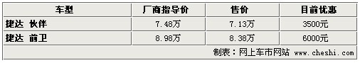 據(jù)4S店銷售人員介紹:目前捷達(dá)共有兩款車型,分為捷達(dá)伙伴和捷達(dá)前衛(wèi)。捷達(dá)伙伴目前優(yōu)惠3500元,捷達(dá)前衛(wèi)優(yōu)惠6000元。目前現(xiàn)車較為充足,但個(gè)別店內(nèi)現(xiàn)車顏色不全,如預(yù)定只需等待1周時(shí)間。在店內(nèi)做一條龍服務(wù),還可獲贈(zèng)價(jià)值1000元裝飾,包括地膠、腳墊、座套等。