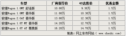 據(jù)銷售人員介紹,雖然兩款增壓版駿捷Wagon車型經(jīng)官方調(diào)價,但各店內(nèi)銷售的駿捷WAGON車型仍可給出1.5萬元的現(xiàn)金優(yōu)惠,還是相當(dāng)超值的,F(xiàn)階段店內(nèi)在售的主要為1.8L的手動版車型,而2.0L車型較少,如需購買仍需提前預(yù)訂,訂金為5000元,一個月左右的時間即可提車。