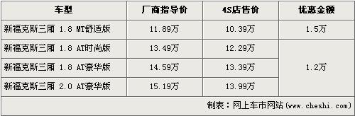 ?怂箲{借出色的外觀設(shè)計(jì)及極佳的操控性贏得了市場的認(rèn)可,在銷量方面一直保持迅猛的勢頭。尤其新款福克斯的上市,一改內(nèi)飾略顯粗糙的詬病,使得?怂垢呌谕昝。?怂共捎昧宋譅栁諷40底盤,將操控進(jìn)行到底,這一優(yōu)勢博得全世界的掌聲,名副其實(shí)成為了這個(gè)級別的標(biāo)桿車型。據(jù)網(wǎng)上車市價(jià)格系統(tǒng)檢測顯示,目前三廂?怂谷底罡邇(yōu)惠1.5萬元,具體車型價(jià)格請看下表: