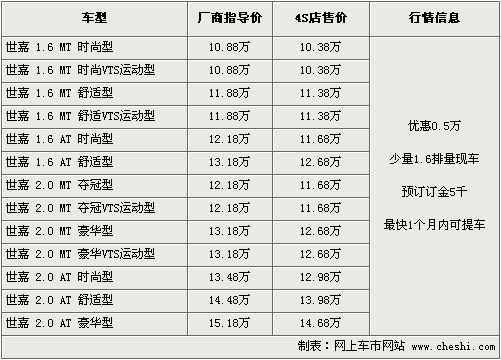 據(jù)東風(fēng)雪鐵龍4S店銷售人員介紹,世嘉目前在售車型共有13款,全系優(yōu)惠5千元,現(xiàn)車只有部分1.6排量車型,2.0車型需要預(yù)訂,訂金5千元,最快1個月內(nèi)就可以提車。另據(jù)了解,所有手動款車型都有普通版及VTS運動版可供選擇,其價格是完全相同的,可根據(jù)消費者自身要求購買。如消費者有意購買,到店詳談會有更優(yōu)惠的價格。北京地區(qū)各4S店由于訂單不同,各店銷售的現(xiàn)車顏色有所不同。