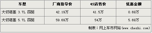 吉普大切諾基是吉普家族中極具個性的一款大尺寸車型,在推出3.7L排量車型后,消費(fèi)者的選擇空間更大,同時帶給駕乘者完全不同的駕駛體驗(yàn)。根據(jù)網(wǎng)上車市價格監(jiān)測系統(tǒng)顯示,目前大切諾基最高優(yōu)惠5.69萬元,具體車型以及價格如下: