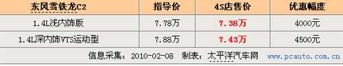 筆者近日走訪北京東風(fēng)雪鐵龍4S店時獲悉,目前店內(nèi)一批1.4L C2增配車型正進行促銷,除了增加(駕駛座椅高度可調(diào)、電動后視鏡、電動后窗)等配置外,現(xiàn)金優(yōu)惠方面也最高達到了4500元,算下來累積優(yōu)惠達到萬元左右。據(jù)了解4S銷售人員表示他們更看好1.4升車型在北京市場的銷售,原因主要是C2作為一款以運動、時尚和外觀為特點的小車型,吸引的更多是年輕人的目光,而這批獨有顏色的車型也是為了迎合了此類需求。