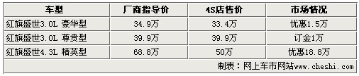 紅旗轎車在中國可謂是國貨中的精品,紅旗盛世車型對大家來說更不會陌生。單憑曾經(jīng)擔任過各大重要會議指定用車這一點,就證明了紅旗盛世的超高品質(zhì),更何況還一度加盟首汽國賓隊,作為中國的驕傲服務國際友人。一直以來一向以中央機關和外事接待任務為主的紅旗盛世,現(xiàn)在離老百姓的生活也很近,很多一直喜歡紅旗轎車的朋友都很關注盛世的市場情況。就此,網(wǎng)上車市走訪了一汽紅旗北京地區(qū)4S店,了解到紅旗盛世最新的市場情況,具體信息請參考下表: