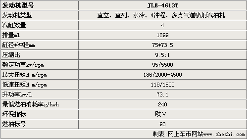 吉利即將推出的這款4G13T發(fā)動機采用廢氣渦輪增壓技術(shù),并配備進氣智能連續(xù)可變氣門正時系統(tǒng),也就是我們常說的CVVT技術(shù)。這款發(fā)動機的進氣歧管采用全塑材質(zhì),并采用電子節(jié)氣門和鏈齒正時驅(qū)動。雖然4G13T發(fā)動機的排量僅為1.3L,但最大功率達到了95kw,而且在2000轉(zhuǎn)的時候即可有186N.m的扭矩輸出,還擁有119N.m/1500rpm的低速扭矩,使這款車的提速相當迅猛。另外,4G13T發(fā)動機達到了歐Ⅴ排放標準,滿足歐洲市場的需求。