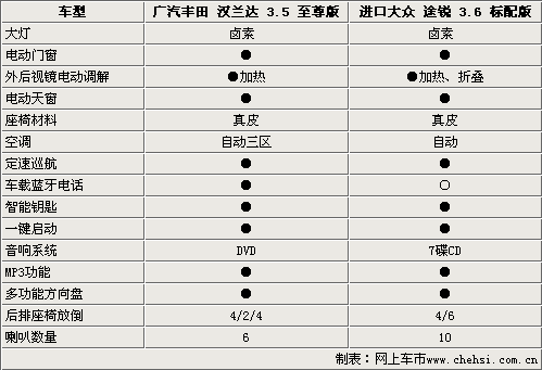 2009年5月25日,廣汽豐田的首款SUV車型漢蘭達(dá)正式下線,并宣布其正式上市。國(guó)產(chǎn)漢蘭達(dá)車型分為2.7和3.5兩個(gè)排量,共計(jì)10款車型,售價(jià)為24.88萬(wàn)元-42.98萬(wàn)元。漢蘭達(dá)在外型設(shè)計(jì)上突破了傳統(tǒng)的SUV設(shè)計(jì)風(fēng)格的束縛,注重內(nèi)在的力量而非粗放的外表,在堅(jiān)韌的軀殼之上更追求智能化,同時(shí)它也是豐田在中國(guó)地區(qū)投產(chǎn)的首款中級(jí)城市SUV車型。那么它的市場(chǎng)競(jìng)爭(zhēng)力究竟如何?和市場(chǎng)上其它中級(jí)城市SUV車型相比究竟有那些優(yōu)勢(shì)呢?為了能讓您可以更加清楚地了解這款新車,我們選擇了市場(chǎng)銷售的進(jìn)口大眾途銳與其來(lái)做一個(gè)全方位的對(duì)比。這兩款車型無(wú)論從車身尺寸,還是動(dòng)力系統(tǒng)均屬于一個(gè)級(jí)別的SUV車型。