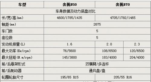 一汽奔騰新款轎車-B50即將在5月16日正式上市,作為向下擴(kuò)展的重要車型,它被一汽寄予了很大的期待。據(jù)悉,B50將推出1.6L的手動、自動5個型號的車型,分別為1.6L MT豪華型、1.6L AT 豪華型、1.6L MT 尊貴型、1.6L AT 尊貴型及特別的1.6L AT 3G型,這里就將這款新車與B70做一個詳細(xì)的配置對比,看看兩款兄弟車型到底區(qū)別在那里。