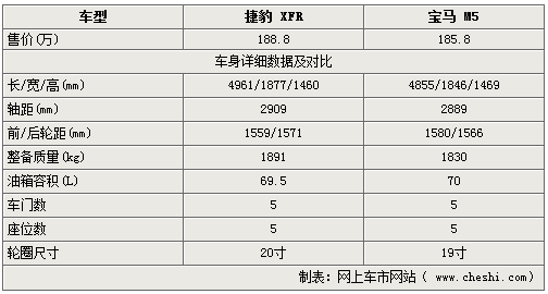 為了滿足豪華車的乘坐舒適,兩款車均增加了整車的長度及軸距,雖然令轉(zhuǎn)向半徑有所增加但是相應的行駛穩(wěn)定亦有所提升。從外觀尺寸上來看,寶馬M5因軸距略遜于捷豹XFR而顯得車內(nèi)空間不夠寬裕。雖然在豪華以及性能表現(xiàn)上相差無幾,但從大尺寸輪轂的配置即可感受到XFR濃濃的運動氣息,更傾向于突出跑車特質(zhì)。