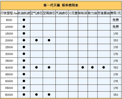5.保養(yǎng)費(fèi)。我們向東風(fēng)日產(chǎn)4S店售后服務(wù)人員咨詢過,新一代天籟保養(yǎng)周期為5000km,首保在5000km時(shí)進(jìn)行(免費(fèi)),以后每5000km做一次保養(yǎng),以一年2萬公里來計(jì)算其一年保養(yǎng)費(fèi)平均用在900元。