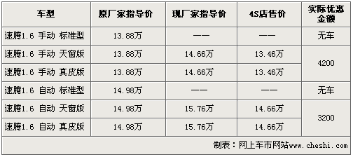 速騰作為一汽大眾新一代“A級(jí)”車(chē)生產(chǎn)平臺(tái)的產(chǎn)物,上市當(dāng)初憑借全系車(chē)型標(biāo)配ESP電子穩(wěn)定程序而成為統(tǒng)計(jì)標(biāo)桿。隨著國(guó)家對(duì)1.6及以下排量車(chē)型減免一半購(gòu)置稅政策的出臺(tái),速騰1.6車(chē)型更受到消費(fèi)者的追捧。據(jù)網(wǎng)上車(chē)市價(jià)格監(jiān)測(cè)系統(tǒng)顯示,速騰1.6排量全系車(chē)型廠家指導(dǎo)價(jià)格上調(diào),優(yōu)惠幅度降低。相關(guān)車(chē)型及價(jià)格如下表所示: