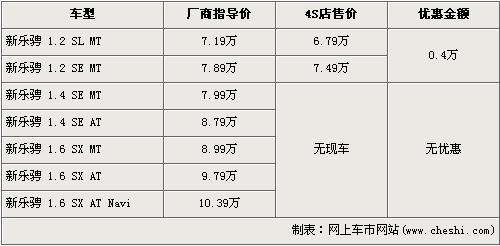據(jù)北京雪佛蘭經銷店銷售人員介紹,雪佛蘭新樂騁分為1.2L、1.4L、1.6L三種排量,售價區(qū)間為7.19萬元-10.39萬元。近期購買新樂騁只能夠買1.2L排量的車型,并且購買新樂騁的消費者可以得到現(xiàn)金4000元的優(yōu)惠,但是現(xiàn)車比較緊張,數(shù)量較少。1.4L和1.6L排量均沒有現(xiàn)車,所以不再此次優(yōu)惠的隊列中。