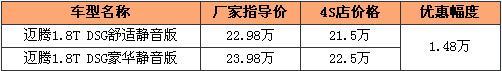 上市不久即優(yōu)惠 邁騰DSG等換代新款售價下滑