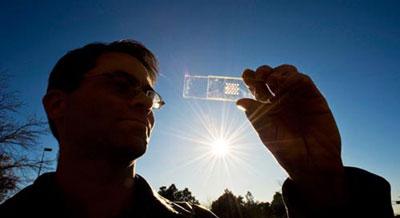 資料圖片:美科學家開發(fā)新型光伏電池。光伏電池可以把太陽的光能直接轉(zhuǎn)化為電能