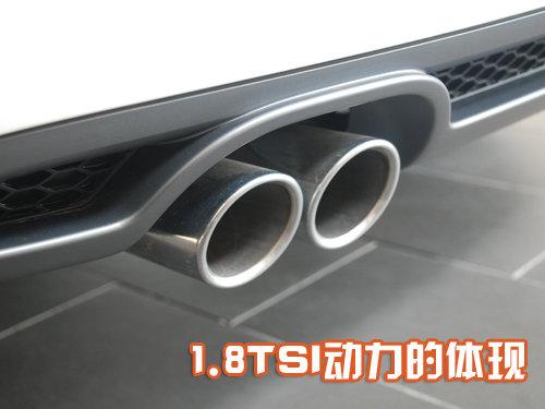位于裝飾功能大于實(shí)際作用的底邊左側(cè),并排放置著兩個(gè)排氣口,從一個(gè)側(cè)面反映了1.8TSI發(fā)動機(jī)強(qiáng)勁實(shí)力。后擋風(fēng)做了一個(gè)略有外傾的弧度處理,上面的橙色縱橫線整齊交錯,并配有一副小巧的雨刷器。